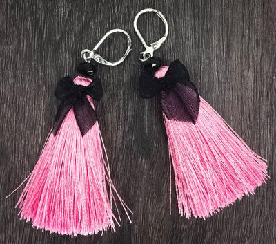Pink Silk Thread with Royal Blue Stud Jhumkas