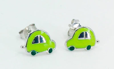 Pure Silver Green Enameled Teeny Weeny Car Earrings