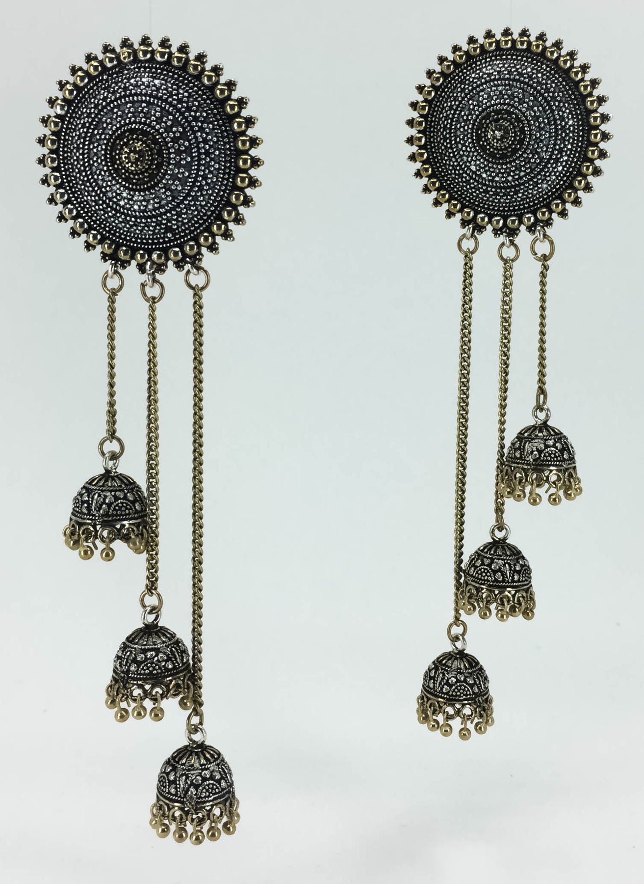 Dual Tone German Silver Kashmiri Dejhoor Earrings